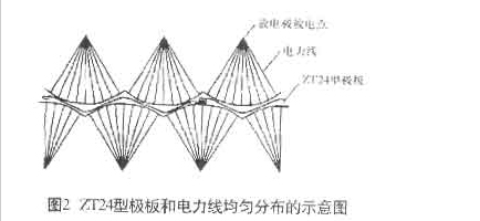 國外某研究機構在實驗室中對不同斷面的極板進行了電流密度分布試驗,試驗時極板上和極線上都附有一層高比電阻粉塵,測試結果表明,平板型的電流密度分布最差,C型和CSW型的也不理想,只有ZT24型極板的較接近理想斷面極板的電流密度分布,具有良好的電性能。