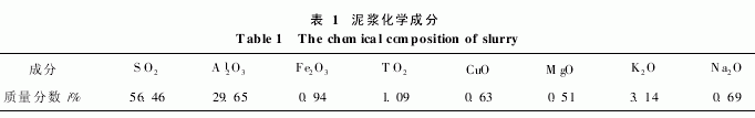 以焦寶石、高嶺土和石英粉等礦物原料配制泥 漿,泥漿密度1.65,泥漿化學組成見表1。