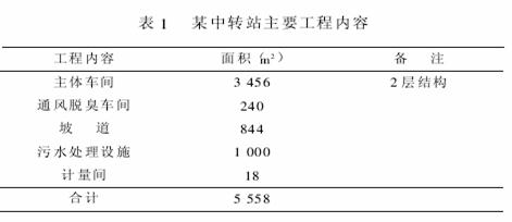 主要工程內容包括主體車間、坡道、通風除臭間、計量間和污水處理設施,見表1 。