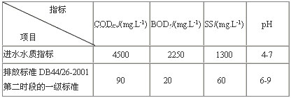 ①UASB反應器:污泥濃度30g/L;容積負荷9.5kg[COD]/(m3.d);CODCr去除率85%。