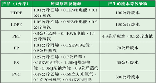 表1 各類新塑料生產所需原料、能源及造成的環境影響![]() |