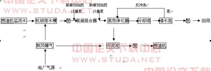 火電廠除渣系統傳統的處理方法是灰渣經碎渣機粉碎后,由爐底液下泵將灰渣水抽至脫水倉,使大部分灰渣在脫水倉內沉淀,灰渣由脫水倉底部運出。少部分渣與水經脫水倉溢流堰流至濃縮機沉淀,澄清水再循環使用。