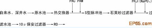 通過混凝、澄清、過濾,可除去水中的大部分細菌。例如某廠引進日本ォルガノ公司的純水站120m3/h預處理工藝為: