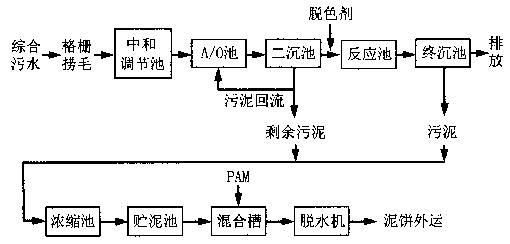 根據該工程廢水的特點,為確保出水達標排放,處理工藝采用以生化為主、物化工藝把關的工藝流程,具體流程見圖1。