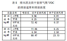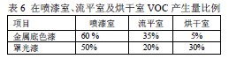 本例在噴漆室、流平室及烘干室產生VOC 的比例見表6。
