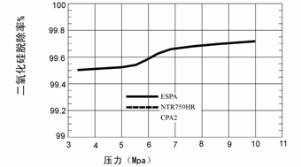 2.2 低壓和超低壓膜,如CPA2,NTR-759膜和ESPA膜,脫除水中二氧化硅能力,均在98%以上,標準條件下二氧化硅的脫除率見圖4。
