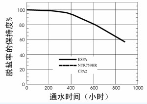 2.3 化學穩定性,以ESPA膜,CPA2或NTR-759膜的耐氯性為例,如圖5所示。