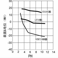 4.1 在不同的PH值下LF10,NTR759HR,ESPA膜表面電荷的比較,見圖6。