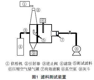 圖1是根據日本JIS標準制造的濾料測試裝置[1],利用該設備可以在連續的過濾與清灰過程中,測試濾料兩側的壓差變化狀況及凈化效率。