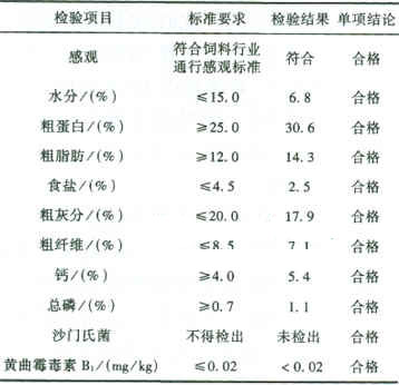 餐廚垃圾生產過程嚴格執行中華人民共和國飼料衛生標準GB13078-2001。我們采用通行的飼料質量標準及檢驗方法對本工藝處理后的餐廚垃圾的蛋白飼料進行了抽樣檢測,結果如表4所示。