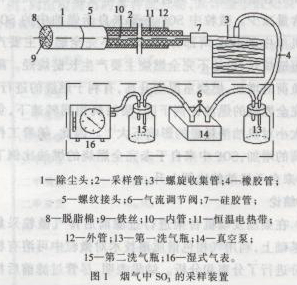 (1)采樣管前端必須安裝除塵頭,以過濾掉煙氣中的灰塵和其他雜質,防止影響化學分析時顯色反應的靈敏性及消耗滴定溶液造成測定偏差。