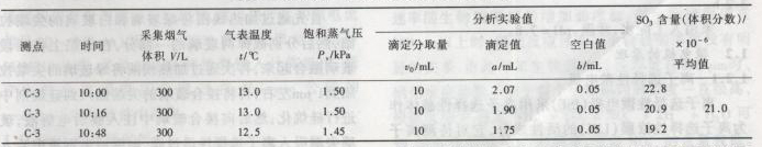表1某燃煤電廠煙氣中S03測定數據及結果