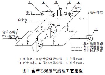 含三苯類VOCs廢氣治理的報導較多[2][3][4],含苯乙烯VOCs廢氣治理的報導尚少見。