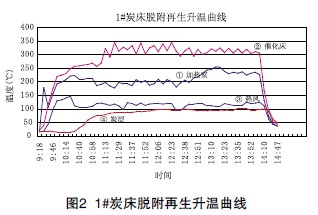 (4)在脫附再生操作的后期,由于VOCs濃度大幅減少,催化床的溫度必須重新依靠電加熱來維持,這樣催化床的升溫曲線上有明顯的“拐點”,提示活性炭的再生已完成,無需依靠監測分析手段,非常直觀、可靠。