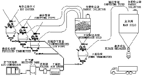 濃相氣力輸灰系統【DENSE PHASE PNUMATIC CONVEYING SYSTEM】采用了先進成熟的管道二相流技術,實現了粉料顆粒的高效、可靠、低能耗、長距離的輸送,是燃煤電廠鍋爐飛灰處理的理想設備(系統)。我公司和德國CP公司有著密切的合作伙伴關系,在氣力輸灰方面主要采用了CP公司的正壓濃相氣力輸送設備,下面將做以簡單介紹: