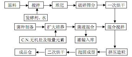 ![]() 圖1 生物有機肥生產工藝流程簡圖 |