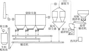 ![]() 圖1 電石渣喂料、烘干及輸送系統工藝流程 |