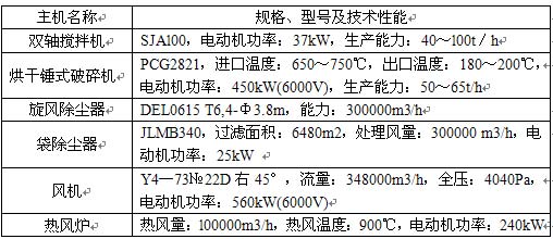 山西陽煤集團水泥二分廠電石渣烘干系統生產線主機設備情況見表1。