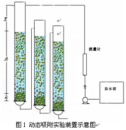 實驗裝置示意圖見圖1,裝置由一個原水箱、一個轉子流量計和三個串聯的有機玻璃吸附柱組成,連接管為硬質塑管,所有閥門的材質為PVC。三個吸附柱上每間隔100 mm加一取樣孔(孔徑為6~8 mm)。