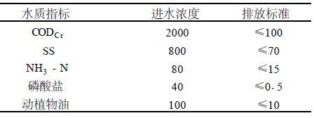 設計處理廢水水量25m3 /d, 執行《污水綜合排放標準》GB8978 - 1996表4一級排放標準。進出水水質如表1所示。