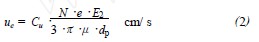 式中, Cu 為滑動修正系數,亦稱庫寧漢(Cunninghum) 修正系數; N 為電荷的數目; e 為單位電荷量, 4. 8 ×10 - 10靜電系單位(300 V/ cm= 1 靜電系單位) ; E2 為集塵極空間的電場強度,靜電系單位;μ為動力黏滯系數, Pa·s; dp 為微粒直徑, cm。