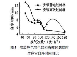 (2) 應用管道式靜電除塵器的過濾系統能使潔凈室自凈時間縮短,這主要是過濾器阻力小的原因。