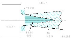 直徑為D的圓噴口形成自由噴注的結構,如圖: