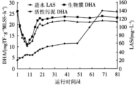 ② 活性污泥的脫氫酶活性略小于生物膜的, 表明在該反應器中活性污泥的活性低于生物膜的活性。