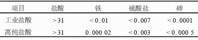 表1 工業鹽酸和高純鹽酸質量對比 % |