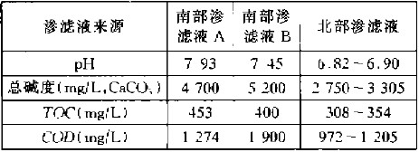 表1 滲濾液水質特性 |