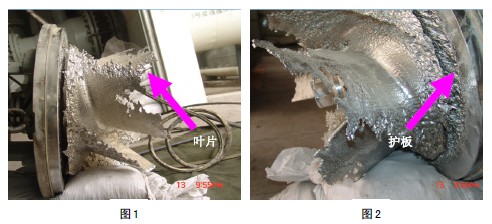 因漿液泵、攪拌器等長期在具有一定含固量的石灰石粉、煙塵以及石膏等混合漿液中連續運行,且漿液中含有濃度較高的氯離子,在對脫硫裝置的運行參數沒有進行深入研究和日常監督不力時,這些轉動機械的磨損、腐蝕較嚴重;下圖是某電廠#3 漿液循環泵運行10 個月后磨損的圖1、圖2。