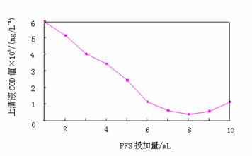 圖1 上清液COD值與聚合硫酸鐵投加量的關系