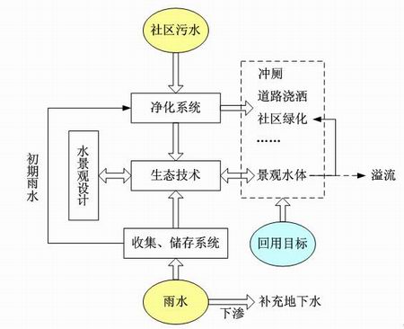 圖2 社區污水再生利用、雨水蓄用與水景觀建設綜合解決方略 |
