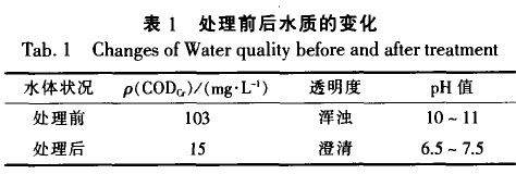 前處理工序所產生的洗滌廢水經該體系處理后.基本符合工業用水中對化學需氧量(≤ 15 mg/L)的要求,見表1;通過調節水體的pH值,也滿足前處理對水體酸堿度的要求。