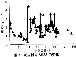 根據反應器的運行情況,可將試驗過程分為兩個階段:啟動期(第1~23天)和提高負荷期(第24~141天)。在提高負荷期又可分為無回流階段(第24~40天)、間歇回流階段(第41~93天)和連續回流階段(第94~141天)。
