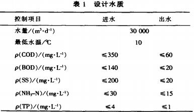 1設計參數及污水處理工藝流程的確定進出水水質參數見表1。