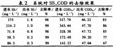 (1)對SS的去除情況。試驗表明,大多數情況下膜生物反應器的出水SS接近0,只有當廢水SS較高時,才有少量微小的顆粒透過膜。因此,工藝對SS