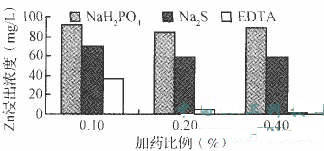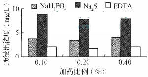(2)在對NaH2PO4、Na2S、EDTA二鈉等幾種藥劑進行投加順序試驗中發現,Pb與S2-形成的化合物在堿性環境也能大量析出,此后再加入 EDTA二鈉溶液,沉淀不消失;向含Zn離子的溶液中先投加Na2S,能形成沉淀,再投加EDTA二鈉,沉淀也不會消失,但是,如果交換EDTA二鈉和 Na2S的投加順序,則不會產生沉淀。所以,穩定化藥劑投加順序為Na2S、EDTA二鈉、NaH2PO4,則穩定化效果最佳。