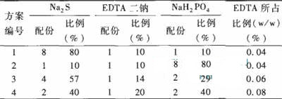 根據以上的試驗及分析,確定加藥時間順序:Na2S、EDTA二鈉、NaH2PO4。