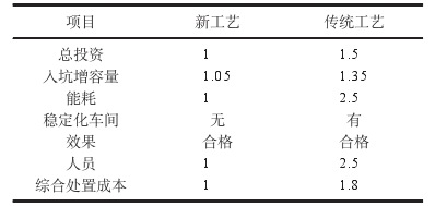 新工藝采用了由飛灰運輸車直接將飛灰卸人填埋坑的方法,簡化了傳統工藝中多個必須的工藝環節,減少了設備、設施的投人,降低了運行成本,新工藝與傳統工藝在同樣達到穩定化要求情況下,其成本對比見表4