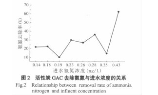 圖 2 活性炭 GAC 去除氨氮與進水濃度的關系