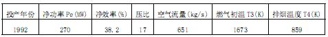 在整個 IGCC 系統中,燃氣側系統是影響 IGCC 整個系統性能指標的主要因素,燃氣輪機性能的提高是發展 IGCC 的前提。本文選取了三菱公司生產的 M701 型燃氣輪機為研究對象,其設計參數見下圖: