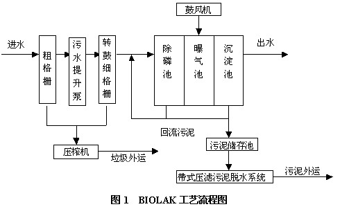 污水處理采用BIOLAK®工藝,詳見工藝流程圖。