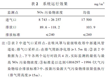 本工藝及處理技術對難度較大的NOx 廢氣治理是可行,經濟上相對合理。NOx 廢氣排放符合 GB16297 - 1996《大氣污染物綜合排放標準》的要求,控制氮氧化物廢氣排放總量,解決了尾氣排放不見 “黃龍”,取得了較好的環境效應,對改善大氣質量、環境保護與社會和諧統一,具有十分重要的意義。