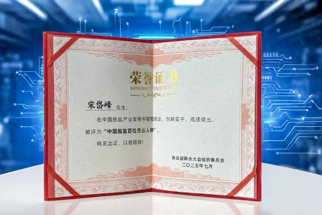 2025年7月2日-4日,第二十屆青島國際水大會暨水展在中鐵·青島世界博覽城拉開帷幕,聚焦行業發展20年,評選出行業突出貢獻優秀人才。美富特環保集團董事長宋岱峰因在污水資源化產品技術研發、產業鏈協同發展與綠色經濟轉型方面做出的突出貢獻,被評選為“中國脫鹽百位杰出人才”。