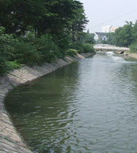 C段:從八中橋流經農大,動物園至保新橋長3800米,均寬14米,均深0.2米,水流速300米/時,沿途有二十余個排放口排入大量生活污水,最大的排放口每天排入約2000立方米污水,該段每天流量約為20000立方米。