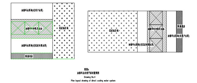 通常情況下,簡單的濁循環水處理的平面布置方式有兩種,一是將冷卻塔、冷卻塔下水池、循環水泵場可集中設在一起,其旁側可設置沉淀池;二是將冷卻塔、冷卻塔下水池、循環水泵場、沉淀池、附屬用房等呈一字形設置。附圖4為一般濁循環水處理平面布置。