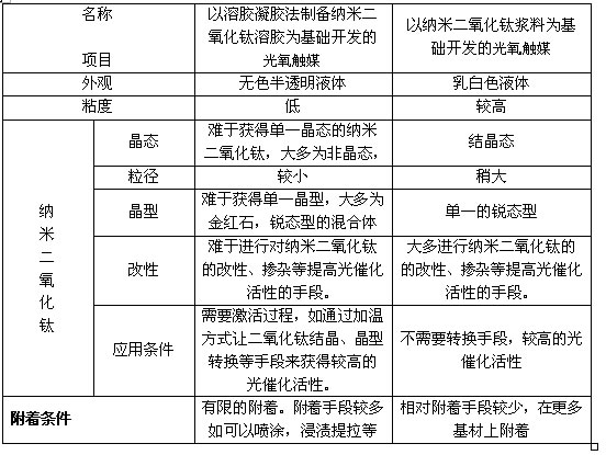 B、以納米二氧化鈦漿料為基礎開發的光氧觸媒。