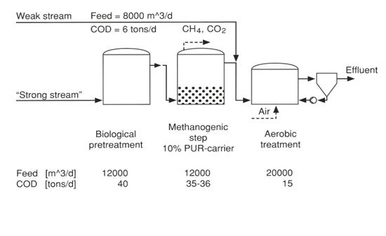 以中試為基礎設計了整個工廠的廢水處理裝置,該系統于1990年投入運行。使用LEVAPOR生物膜工藝,通過厭氧-好氧-多聯級生化處理能非常有效處理紙漿廠產生的廢水。由于生物膜上的微生物菌群的高濃度,厭氧池的體積和其它工藝相比能減少75%,光此項就能為工廠節省1000萬歐元的費用。