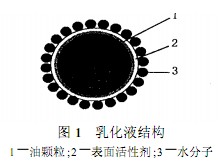 2.1 乳化液的結構與特性[1]工業上使用的乳化液是在油或脂類物質中加入表面活性劑,然后加入水。油和脂類在表面活性劑的作用下以極微小的顆粒分散在水中,如圖1所示。